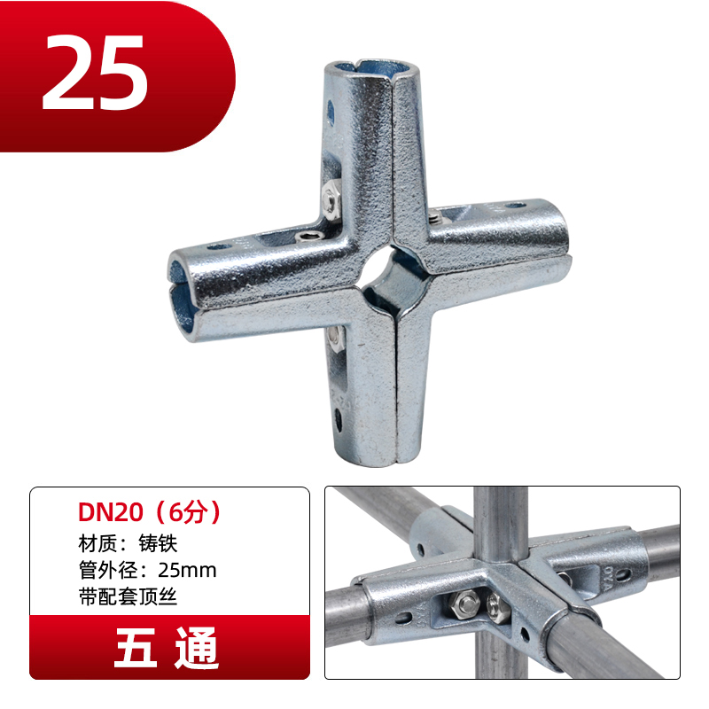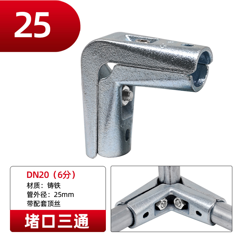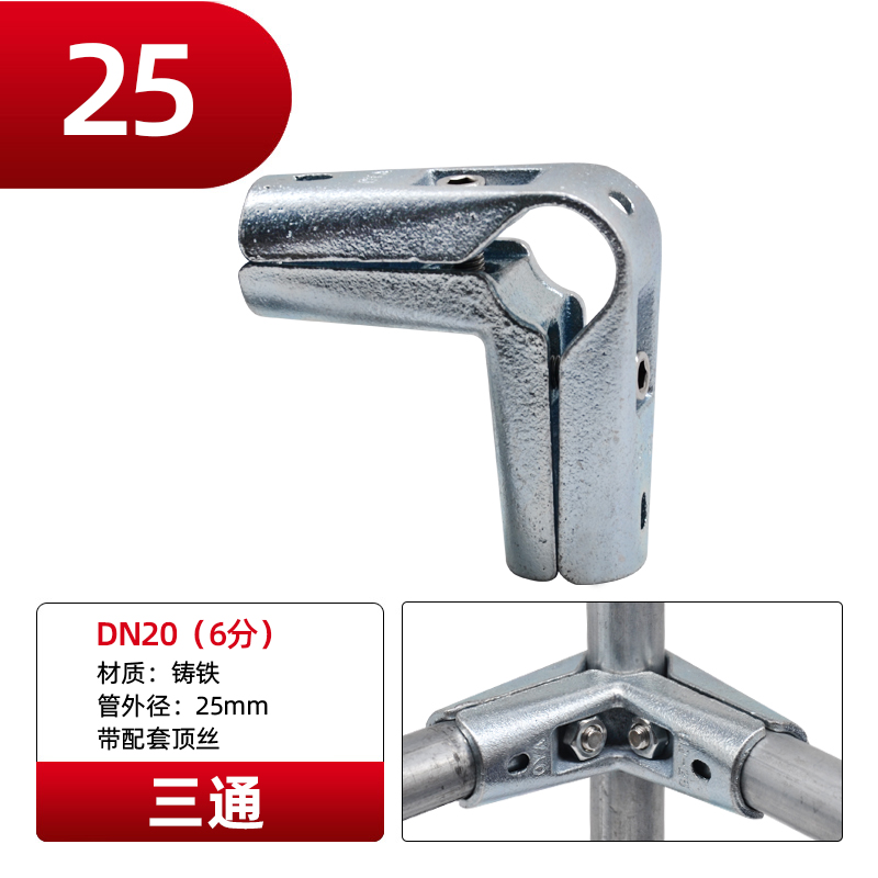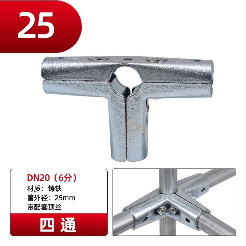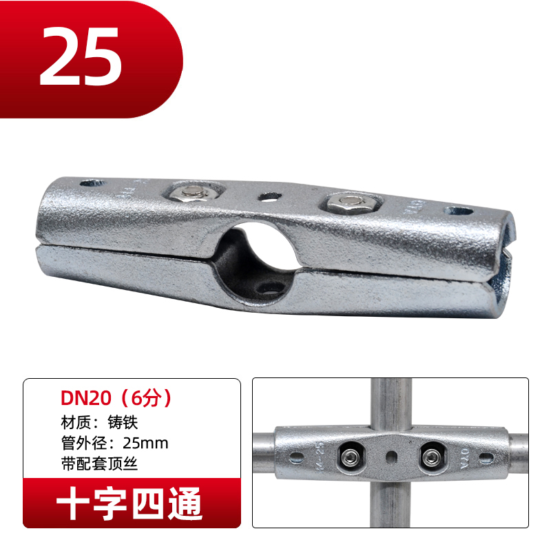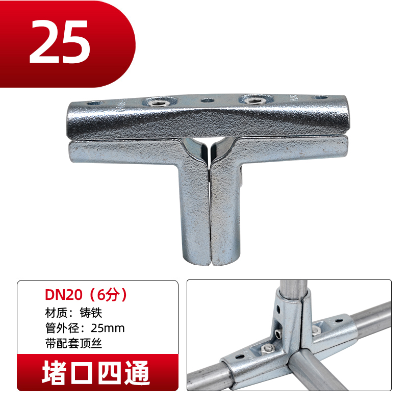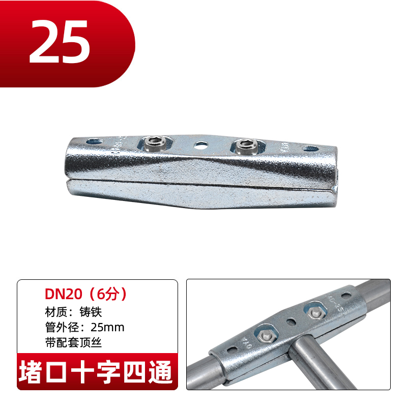 Galvanized steel pipe connector 25 non welding steel pipe fixed joint bracket aluminum alloy square tube connector fastener