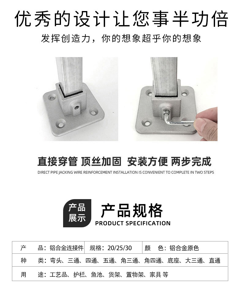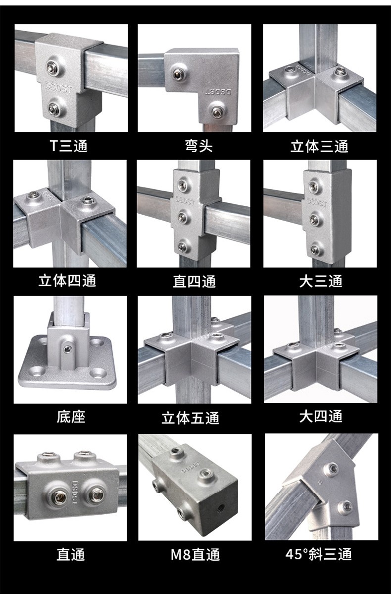 Galvanized steel pipe connector 25 non welding steel pipe fixed joint bracket aluminum alloy square tube connector fastener